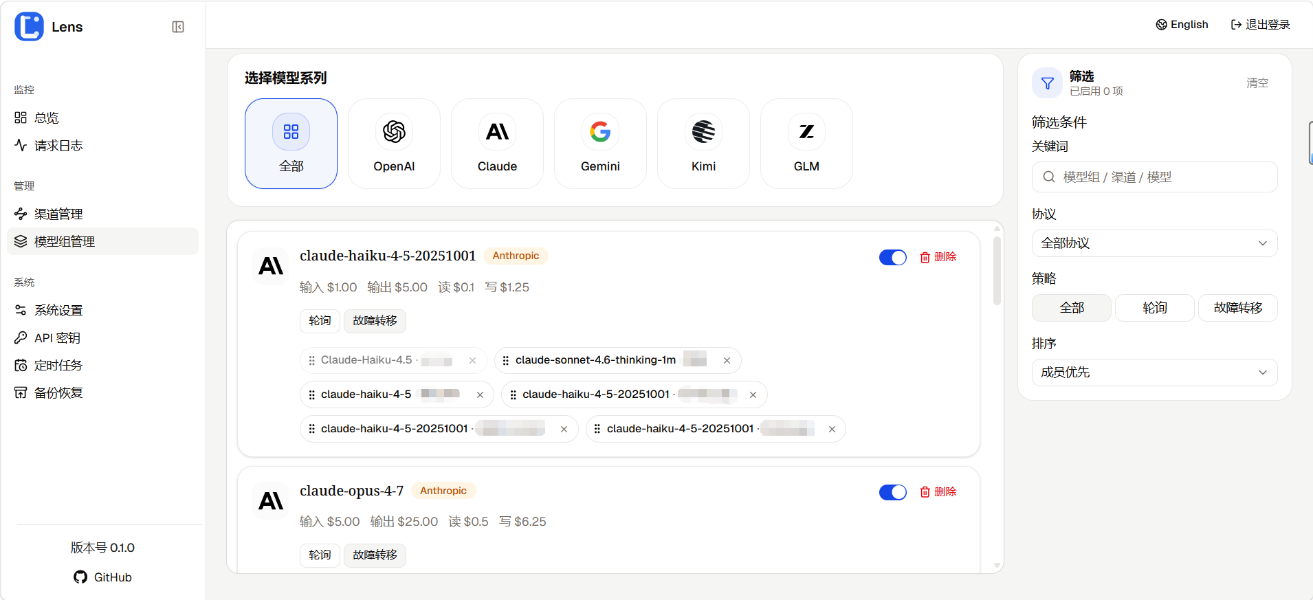 看到太多的go,ts,rust项目了。呜呜,python也想说自己可以,大部分推理框架例如vLLM、SGLang都是python写的,写的聚合项目速度再怎么快,上游也不给力啊,何况项目定位的是个人使用,简简单单的高并发python也是可以的,所以你可以把lens看成python版的个人api聚合网关~
