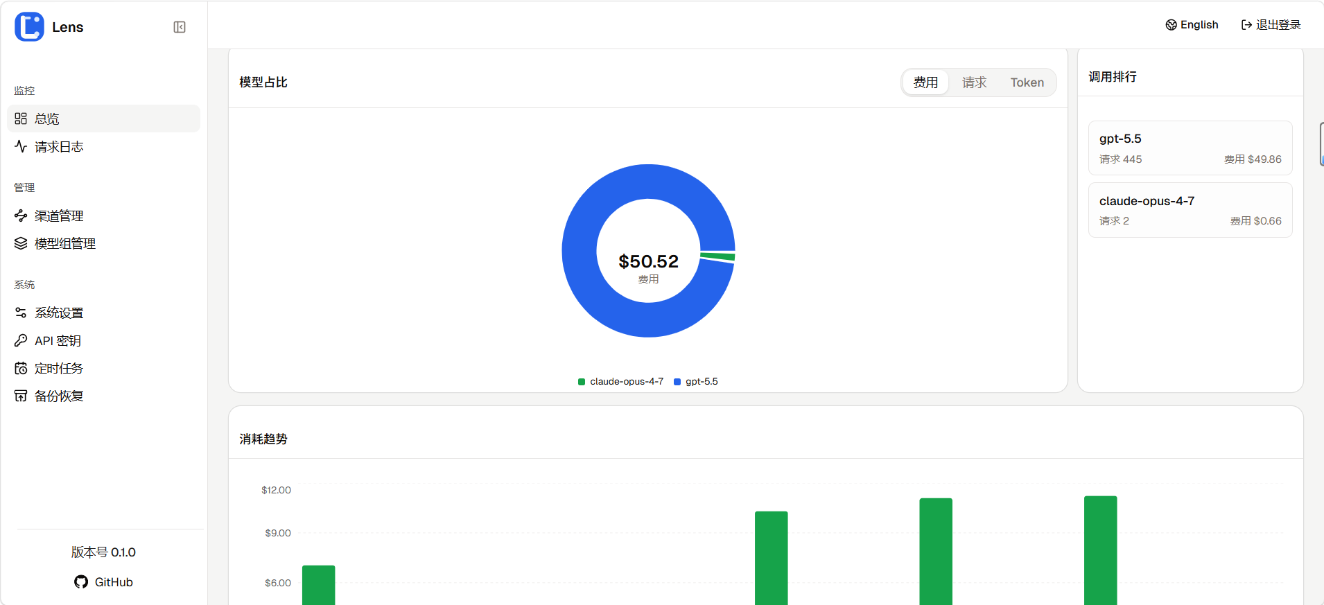 如果你也希望有一个轻量化工具,能把 OpenAI、Anthropic、Gemini等上游统一起来,同时还能看清路由、日志、成本和配置,那就快来https://github.com/dyedd/lens看看吧。