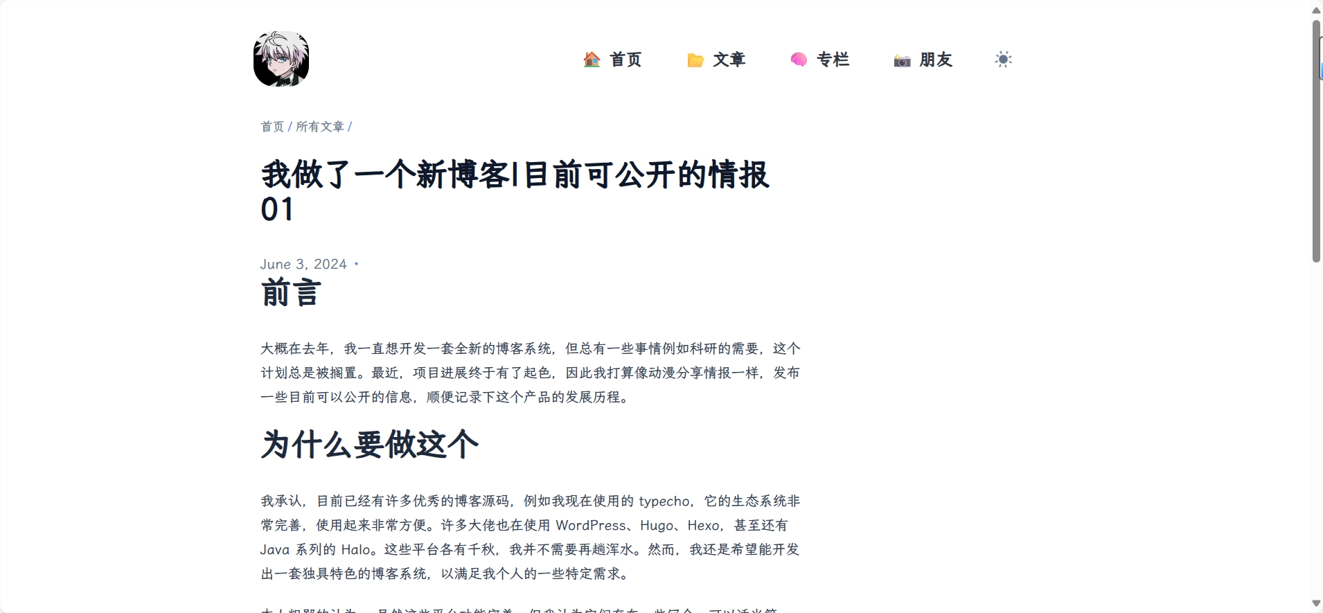 - 文章系统:兼容 Hexo 等静态博客的目录化结构,迁移成本低